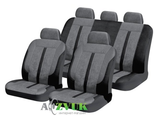 - Центральная часть - Алькантара, отделка - высококачественная искусственная кожа. Дублированы поролоном на сетке. В комплекте пять подголовников. Шесть молний для деления заднего сидения. Разрывная мембрана для кресел с Airbag. Карманы на спинках передних сидений. Чехлы на передние сидения состоят из двух частей.