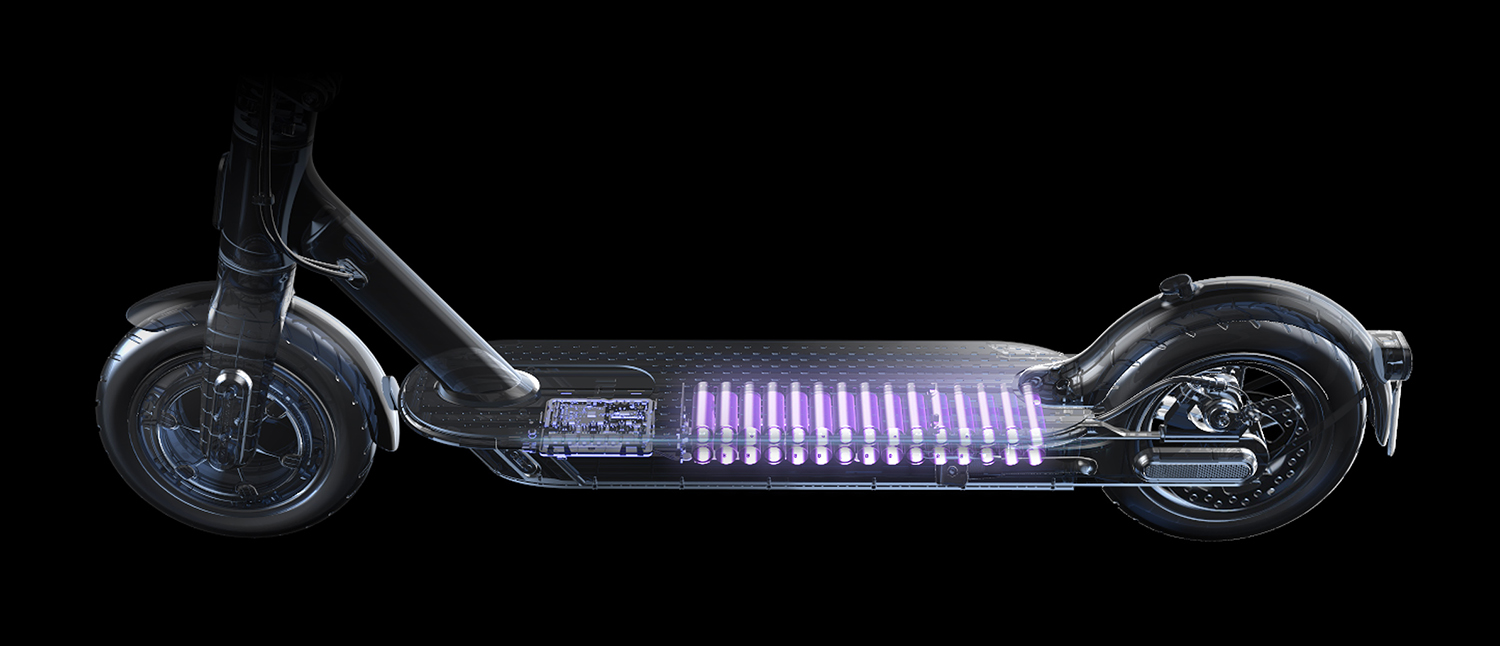 - Самокат оснащен надежным литий-ионным аккумулятором. Аккумулятор имеет в несколько раз увеличенную мощность энергоснабжения и увеличенную производительность, поэтому дальность хода на одном заряде составляет 30 км. Интеллектуальная система управления аккумулятором с шестиступенчатой защитой делает поездку максимально безопасной. Мобильное приложение позволяет следить за состоянием аккумулятора и сообщает о наличии ошибок в устройстве.