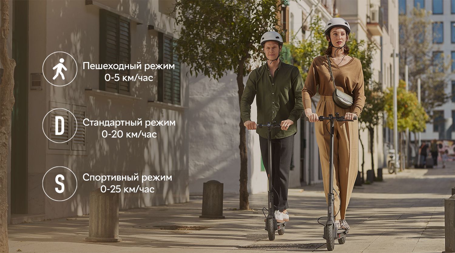 - Режим D (стандартный) – это средний режим скорости до 20 км/час, сбалансированный расход аккумулятора и достаточная скорость для быстрого перемещения.