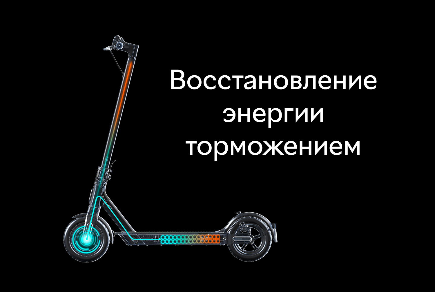 - В электросамокате Xiaomi Mi 1S применяется система регенерации кинетической энергии – вырабатываемая при торможении кинетическая энергия превращается в электрическую энергию, которая затем идет на подзарядку аккумулятора. Благодаря такой системе увеличивается запас хода самоката.