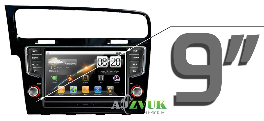 - Штатное головное устройство с навигацией на ОС Android AudioSources ANS-940A для автомобиля Volkswagen Golf 7 имеет огромный качественный сенсорный экран с разрешением (800x480 пикселей), автомобильную громкую связь (Hands Free), качественный FM-модулем высокой чувствительности, проигрыватель с поддержкой популярных медиа форматов (MKV, FLAC, MP3, MPEG4, AVI, MPG2 и т.д.), мощный встроенный усилитель звука.