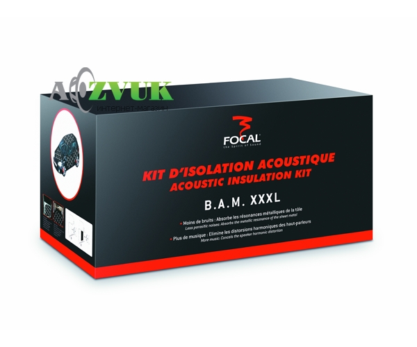 - Focal B.A.M. — очень удобный в применении самоклеющийся материал для снижения уровня шумов и вибраций в автомобиле. По структуре лист B.A.M. представляет собой сэндвич из самоклеющегося вибропоглощающего бутилсодержащего слоя, слоя алюминиевой фольги и слоя пористого шумопоглощающего материала. При помощи B.A.M. с высокой эффективностью снижается уровень проникающих в автомобиль внешних шумов и нежелательных вибраций, а также создаются оптимальные условия для работы акустических систем в местах их установки (дверях и т.п.). Композитная структура B.A.M. облегчает процесс обработки поверхностей и значительно сокращает затраты времени.