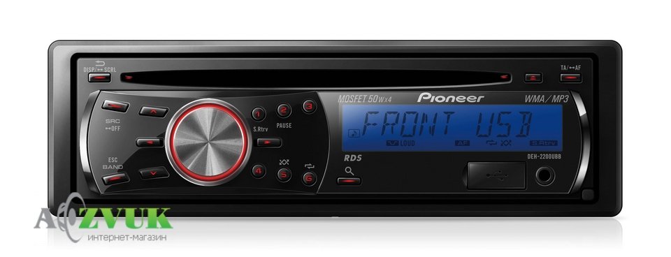 Pioneer-DEH-2200UBB. Максимальна вихідна потужність Вт MOSFET 50Вт x 4. Ваша колекція на CD (включаючи CD-R. CD-RW). Передня панель Знімний. Підсвічування червоних кнопок. Роз'єм Aux-In. USB Вхід.