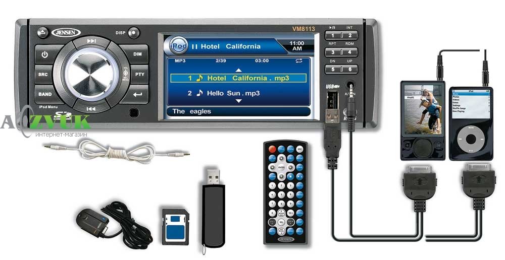 - Мультимедійний ресивер 1DIN з дисплеєм 3.5 дюйма відтворює формати DVD/CD-DA/MP3/WMA/VCD/SVCD/Xvid/AVI/MPEG1/2. а також з флеш-накопичувачів USB та SD-карт. Підтримує безпосереднє підключення iPod/iPhone. що дозволяє відтворювати музику та відео. керувати iPod/iPhone з передньої панелі ресивера або ПДК. виводити плей-листи на екрані. здійснювати заряджання. FM/AM-тюнер з RDS. Потужний високоякісний підсилювач 4х40Вт. Вхід для підключення заднього виду камери. Аудіовиход на зовнішній підсилювач потужності. Інтерфейс підключення системи керування з керма автомобіля. Вхід AV Aux на передній панелі дозволяє швидко та просто підключати портативні мультимедійні пристрої для відтворення музики через акустичну систему автомобіля. Знімна передня панель.