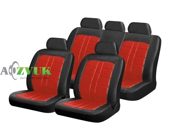 Універсальні чохли для автомобільних сидінь. Виготовлені із високоякісної штучної шкіри. Дубльовані поролоном на сітці. У комплекті п'ять підголівників. Шість блискавок для розподілу заднього сидіння. Розривна мембрана для крісел з AirBag. Кишені на спинках передніх сидінь. Чохли для передніх сидінь складаються із двох частин (спинка + сидіння).