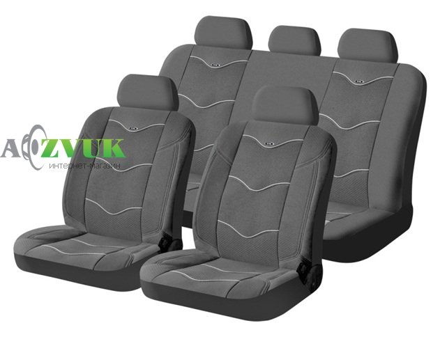 Універсальні чохли для автомобільних сидінь. Центральна частина – Жакард, оздоблення – Алькантара. Дубльовані поролоном на сітці. У комплекті п'ять підголівників. Шість блискавок для розподілу заднього сидіння. Розривна мембрана для крісел з AirBag. Кишені на спинках передніх сидінь.