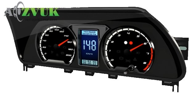 Стрілкова комбінація приладів GF 825 4*4 ідеально впишеться в інтер'єр Вашого автомобіля, а її установка проста і не вимагає переробок. Для перегляду параметрів та результатів діагностики систем автомобіля комбінація має вертикально орієнтований РК-дисплей. Оперативне керування вбудованим у комбінації бортовим комп'ютером здійснюється за допомогою підрульового перемикача.