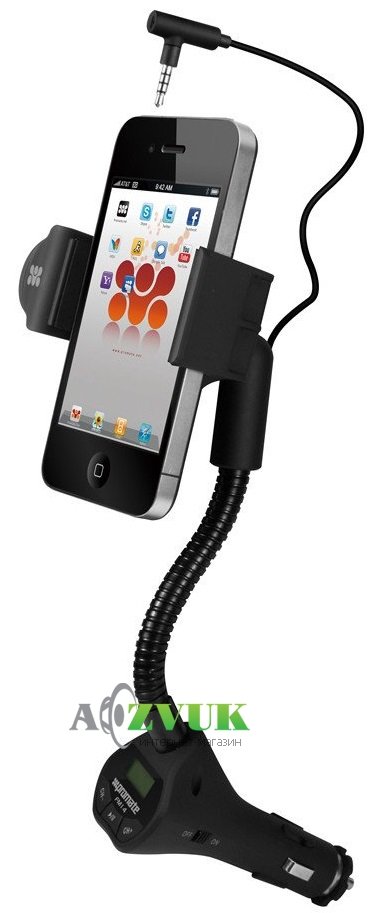 - Автомобільний тримач, що налаштовується в горизонтальній площині, з вбудованою функцією FM трансмітера