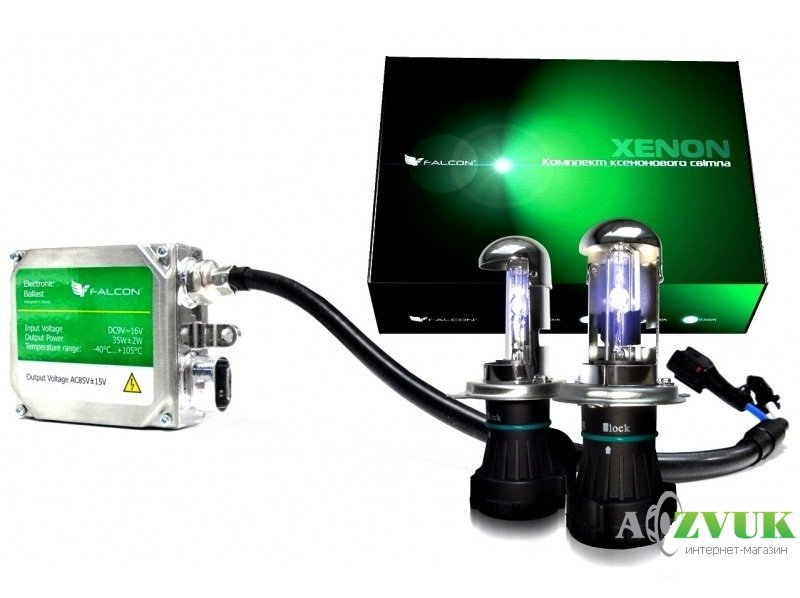 - Комплект біксенону Falcon – настановний комплект автомобільного світла, призначений для монтажу машини з моно оптикою. Рухлива шторка своїм рухом забезпечує перемикання між режимами ближнього та далекого світла. Лампи корейського виробництва Falcon представлені в трьох колірних температурах, що стає додатковою перевагою поряд із стійкістю до ударів, вібрацій та перепадів температур. Блоки розпалу Falcon разом із проводкою та конекторами забезпечують універсальність установки та безперебійність роботи. Установчий комплект біксенону – це безпечне водіння та якісне освітлення дорожнього полотна.