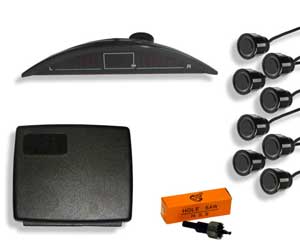 - У комплекті:датчики паркування 8шт,світлодіодний дисплей з біпером на торпедо,цифрова індикація відстані,2 шкали.Фреза та проставки для встановлення датчиків під кутом.