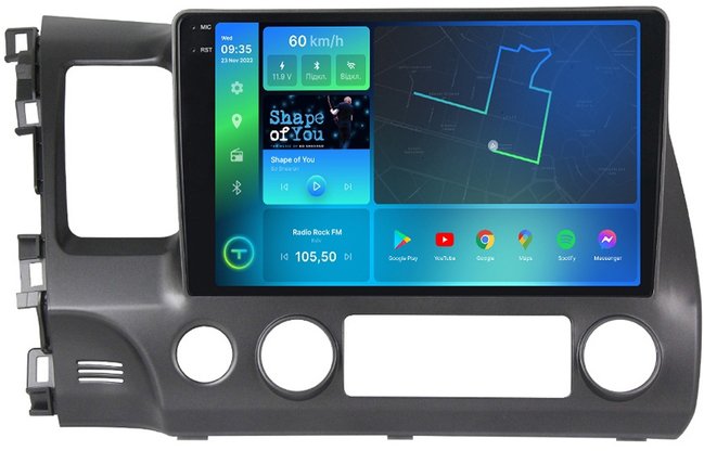 - Цифрова автомагнітола, дизайн якої був повністю розроблений під особливості салону вашого автомобіля, працює на ОС Android, підтримує інтернет-підключення Wi-Fi, 3G/4G, систему контролю тиску в шинах TPMS, систему кругово огляну 360, а також Carplay/Android Auto та відповідає найвищим вимогам поціновувачів музики під час поїздок на авто.