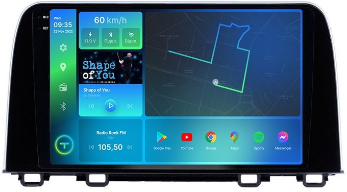 - Цифрова автомагнітола, дизайн якої був повністю розроблений під особливості салону вашого автомобіля, працює на ОС Android, підтримує інтернет-підключення Wi-Fi, 3G/4G, систему контролю тиску в шинах TPMS, систему кругово огляну 360, а також Carplay/Android Auto та відповідає найвищим вимогам поціновувачів музики під час поїздок на авто.