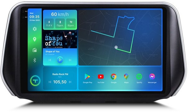 - Цифрова автомагнітола, дизайн якої був повністю розроблений під особливості салону вашого автомобіля, працює на ОС Android, підтримує інтернет-підключення Wi-Fi, 3G/4G, систему контролю тиску в шинах TPMS, систему кругово огляну 360, а також Carplay/Android Auto та відповідає найвищим вимогам поціновувачів музики під час поїздок на авто.