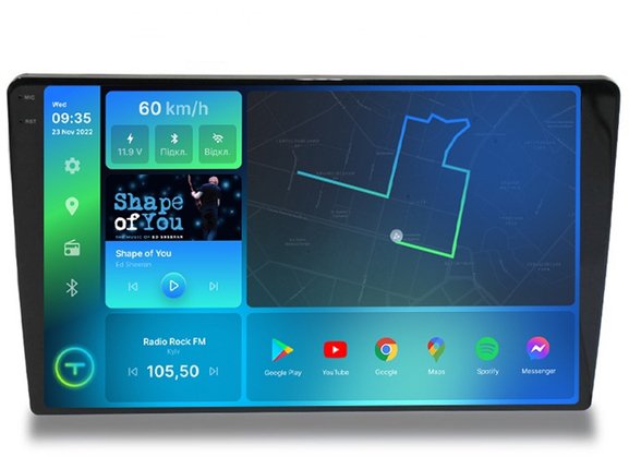 - Цифрова автомагнітола, дизайн якої був повністю розроблений під особливості салону вашого автомобіля, працює на ОС Android, підтримує інтернет-підключення Wi-Fi, 3G/4G, систему контролю тиску в шинах TPMS, систему кругово огляну 360, а також Carplay/Android Auto та відповідає найвищим вимогам поціновувачів музики під час поїздок на авто.