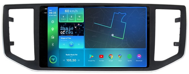 - Цифрова автомагнітола, дизайн якої був повністю розроблений під особливості салону вашого автомобіля, працює на ОС Android, підтримує інтернет-підключення Wi-Fi, 3G/4G, систему контролю тиску в шинах TPMS, систему кругово огляну 360, а також Carplay/Android Auto та відповідає найвищим вимогам поціновувачів музики під час поїздок на авто.