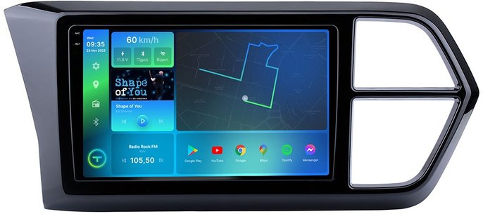 - Цифрова автомагнітола, дизайн якої був повністю розроблений під особливості салону вашого автомобіля, працює на ОС Android, підтримує інтернет-підключення Wi-Fi, 3G/4G, систему контролю тиску в шинах TPMS, систему кругово огляну 360, а також Carplay/Android Auto та відповідає найвищим вимогам поціновувачів музики під час поїздок на авто.