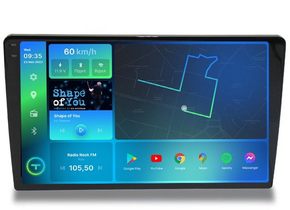 - Цифрова автомагнітола, дизайн якої був повністю розроблений під особливості салону вашого автомобіля, працює на ОС Android, підтримує інтернет-підключення Wi-Fi, 3G/4G, систему контролю тиску в шинах TPMS, систему кругово огляну 360, а також Carplay/Android Auto та відповідає найвищим вимогам поціновувачів музики під час поїздок на авто.