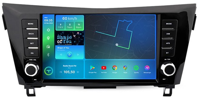 - Цифрова автомагнітола, дизайн якої був повністю розроблений під особливості салону вашого автомобіля, працює на ОС Android, підтримує інтернет-підключення Wi-Fi, 3G/4G, систему контролю тиску в шинах TPMS, систему кругово огляну 360, а також Carplay/Android Auto та відповідає найвищим вимогам поціновувачів музики під час поїздок на авто.