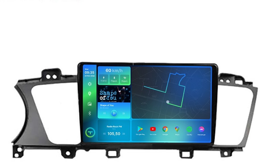 - Цифрова автомагнітола, дизайн якої був повністю розроблений під особливості салону вашого автомобіля, працює на ОС Android, підтримує інтернет-підключення Wi-Fi, 3G/4G, систему контролю тиску в шинах TPMS, систему кругово огляну 360, а також Carplay/Android Auto та відповідає найвищим вимогам поціновувачів музики під час поїздок на авто.