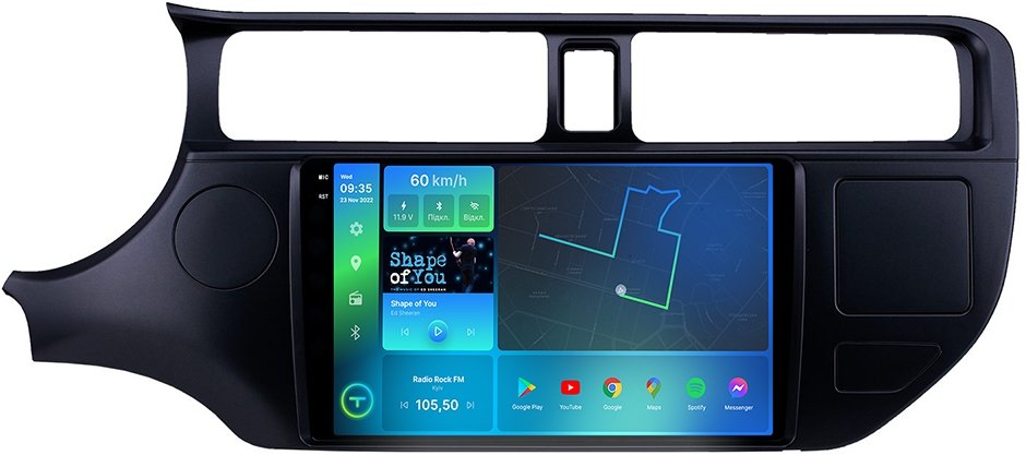 - Цифрова автомагнітола, дизайн якої був повністю розроблений під особливості салону вашого автомобіля, працює на ОС Android, підтримує інтернет-підключення Wi-Fi, 3G/4G, систему контролю тиску в шинах TPMS, систему кругово огляну 360, а також Carplay/Android Auto та відповідає найвищим вимогам поціновувачів музики під час поїздок на авто.