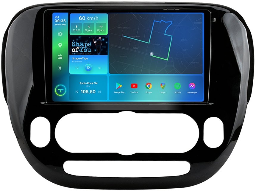 - Цифрова автомагнітола, дизайн якої був повністю розроблений під особливості салону вашого автомобіля, працює на ОС Android, підтримує інтернет-підключення Wi-Fi, 3G/4G, систему контролю тиску в шинах TPMS, систему кругово огляну 360, а також Carplay/Android Auto та відповідає найвищим вимогам поціновувачів музики під час поїздок на авто.