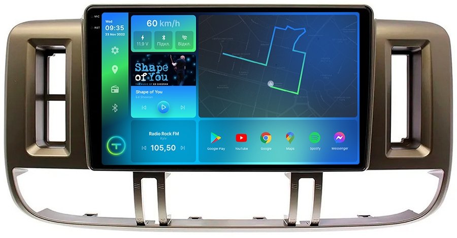 - Цифрова автомагнітола, дизайн якої був повністю розроблений під особливості салону вашого автомобіля, працює на ОС Android, підтримує інтернет-підключення Wi-Fi, 3G/4G, систему контролю тиску в шинах TPMS, систему кругово огляну 360, а також Carplay/Android Auto та відповідає найвищим вимогам поціновувачів музики під час поїздок на авто.