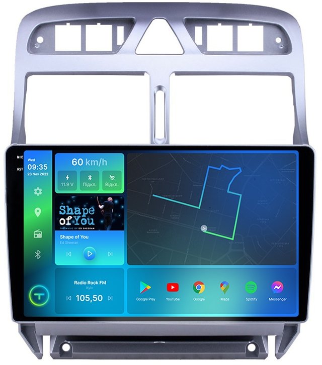 - Цифрова автомагнітола, дизайн якої був повністю розроблений під особливості салону вашого автомобіля, працює на ОС Android, підтримує інтернет-підключення Wi-Fi, 3G/4G, систему контролю тиску в шинах TPMS, систему кругово огляну 360, а також Carplay/Android Auto та відповідає найвищим вимогам поціновувачів музики під час поїздок на авто.