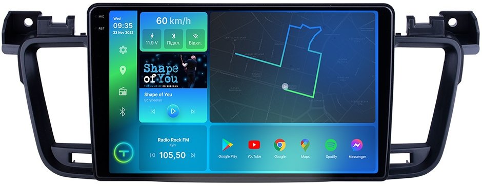 - Цифрова автомагнітола, дизайн якої був повністю розроблений під особливості салону вашого автомобіля, працює на ОС Android, підтримує інтернет-підключення Wi-Fi, 3G/4G, систему контролю тиску в шинах TPMS, систему кругово огляну 360, а також Carplay/Android Auto та відповідає найвищим вимогам поціновувачів музики під час поїздок на авто.