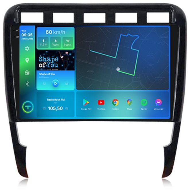 - Цифрова автомагнітола, дизайн якої був повністю розроблений під особливості салону вашого автомобіля, працює на ОС Android, підтримує інтернет-підключення Wi-Fi, 3G/4G, систему контролю тиску в шинах TPMS, систему кругово огляну 360, а також Carplay/Android Auto та відповідає найвищим вимогам поціновувачів музики під час поїздок на авто.
