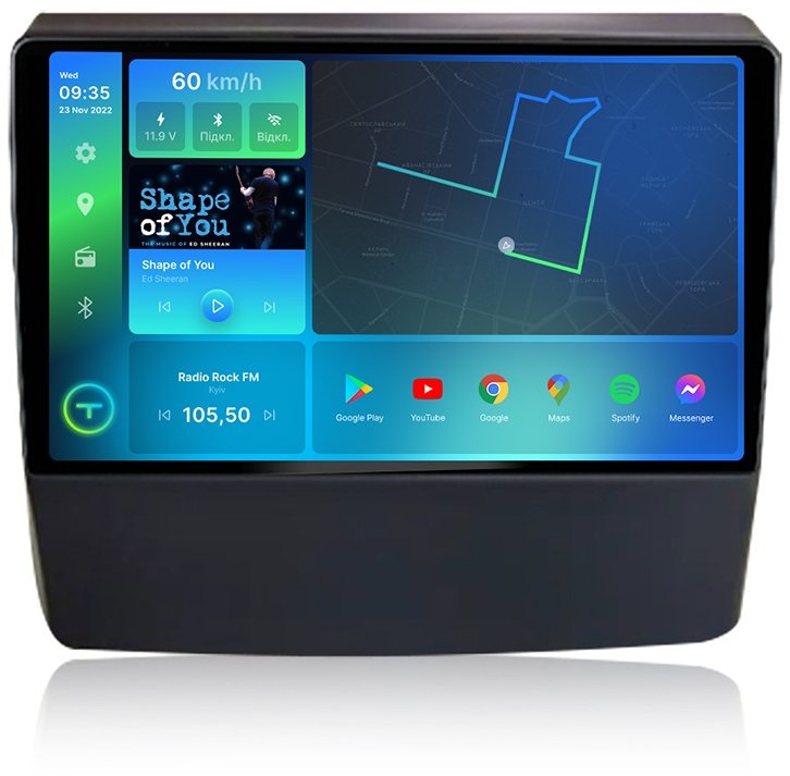 - Цифрова автомагнітола, дизайн якої був повністю розроблений під особливості салону вашого автомобіля, працює на ОС Android, підтримує інтернет-підключення Wi-Fi, 3G/4G, систему контролю тиску в шинах TPMS, систему кругово огляну 360, а також Carplay/Android Auto та відповідає найвищим вимогам поціновувачів музики під час поїздок на авто.