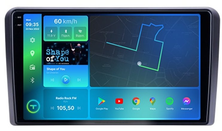 - Дисплей: 9" 2,5D QLED, Антибликовий ємнісний з мультитач.