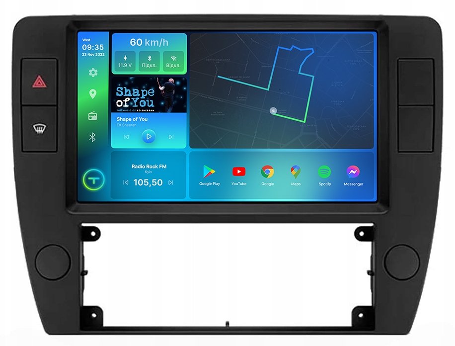 - Цифрова автомагнітола, дизайн якої був повністю розроблений під особливості салону вашого автомобіля, працює на ОС Android, підтримує інтернет-підключення Wi-Fi, 3G/4G, систему контролю тиску в шинах TPMS, систему кругово огляну 360, а також Carplay/Android Auto та відповідає найвищим вимогам поціновувачів музики під час поїздок на авто.