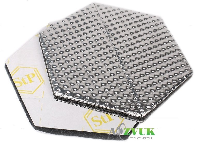 - У комплект входять дві однакові деталі, кожна з яких являє собою багатошарову комбіновану конструкцію, що складається з лицьового шару (алюмінієва фольга); звукопоглинаючого шару (модифікований еластичний пінополіуретан); монтажного шару (матеріал вібродемпфуючий самоклеючий); папери антиадгезійної, що захищає монтажний шар від пошкодження. Шари з'єднані методом дублювання.